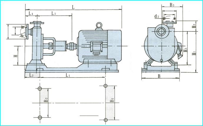 JMZ型不銹鋼自吸泵(酒泵外形安裝尺寸圖: