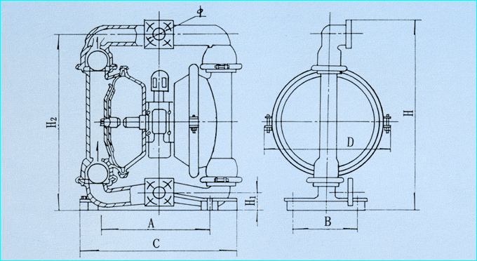 本單位生產(chǎn)的QBY型氣動(dòng)隔膜泵是一種新型輸送機(jī)械,采用壓縮空氣為動(dòng)力源,對(duì)于各種腐蝕性液體,帶顆粒的液體,高粘度、易揮發(fā)、易燃、劇毒的液體,均能予以抽光吸盡。其性能參數(shù)與聯(lián)邦德國(guó)的WLLDENPVMPS、美國(guó)的MARlOWPUMPS相近。
