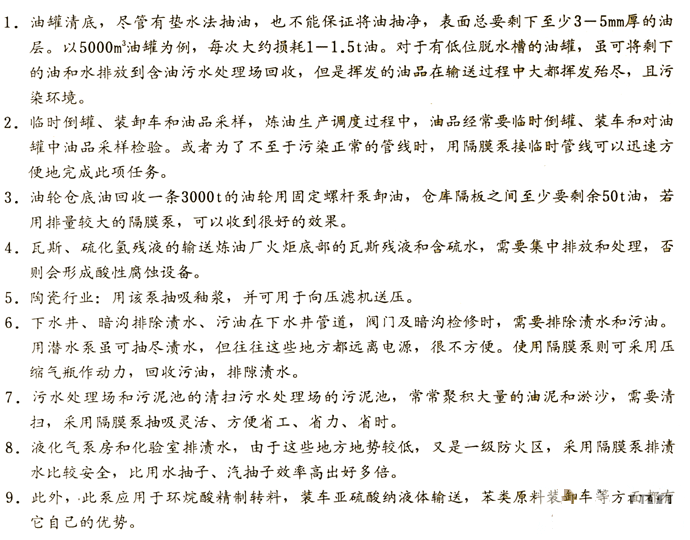 • 各種磨料、腐蝕劑、石油及泥漿、清洗油垢及一般容器。