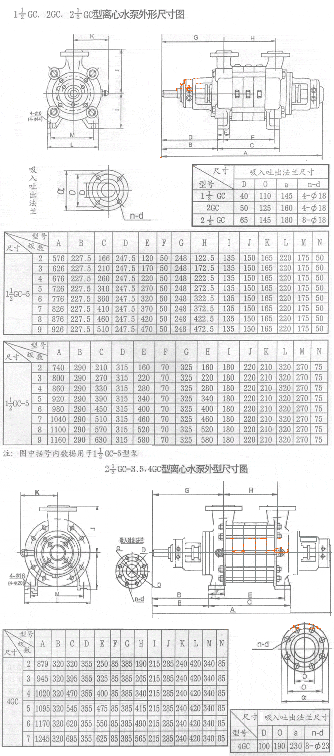 GC型臥式多級(jí)離心泵 :GC型臥式多級(jí)離心泵|外形安裝尺寸