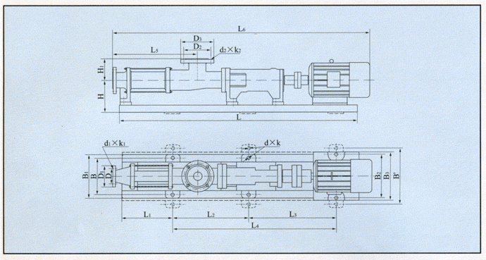 G型螺桿泵外形安裝尺寸圖: