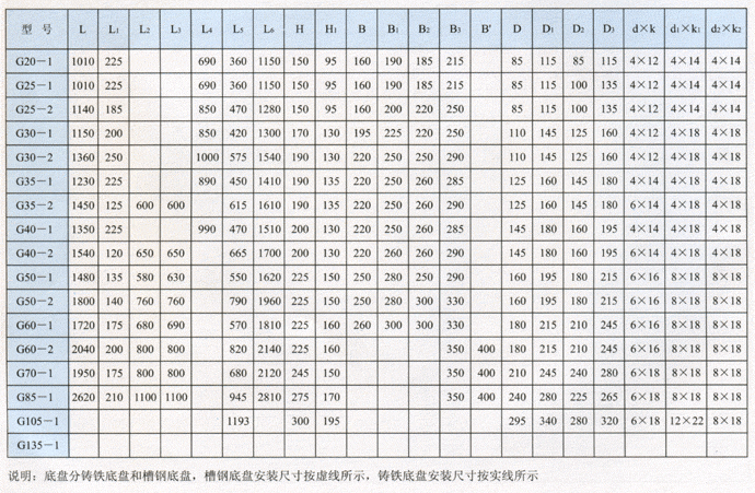 G型螺桿泵外形安裝尺寸表: