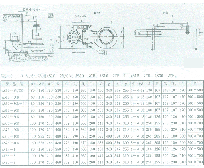 AS型系列潛水排污泵(簡(jiǎn)稱污水泵)采用德國(guó)ABS公司先進(jìn)的技術(shù),特別適用于輸送含有堅(jiān)硬固體、纖維的液體,以及特別臟、粘和滑的液體。所有AS泵均裝有經(jīng)調(diào)整好的撕裂機(jī)構(gòu)能將污水中長(zhǎng)纖維、袋、帶、草、布條等撕裂后排出。因此,在污水中工作不會(huì)堵塞運(yùn)行極為可靠。