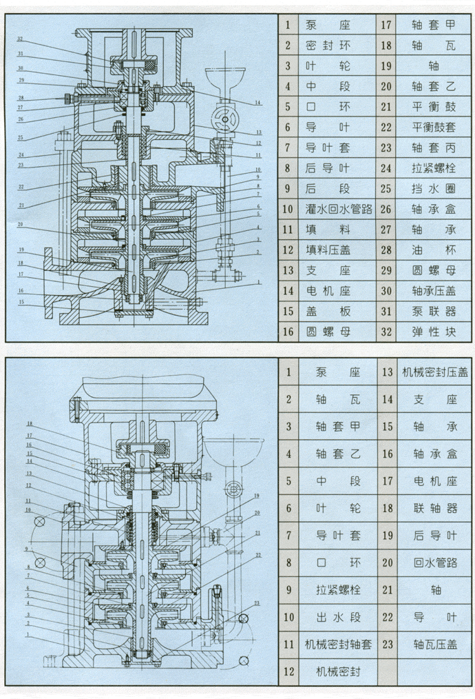 | 8、水泵振動(dòng),軸承過熱。 | 電機(jī)與泵不同心,軸承缺油或磨損。 | 調(diào)整電機(jī)軸與泵軸的同軸度,加油或更換軸承。 |