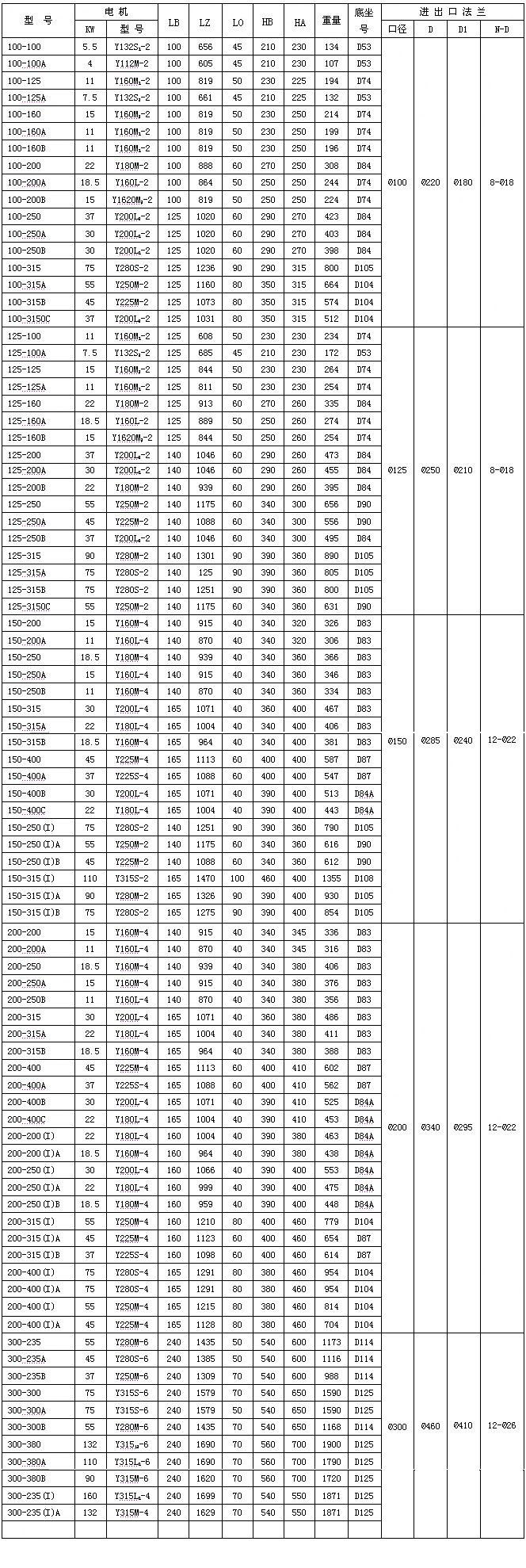 管道泵型號意義: